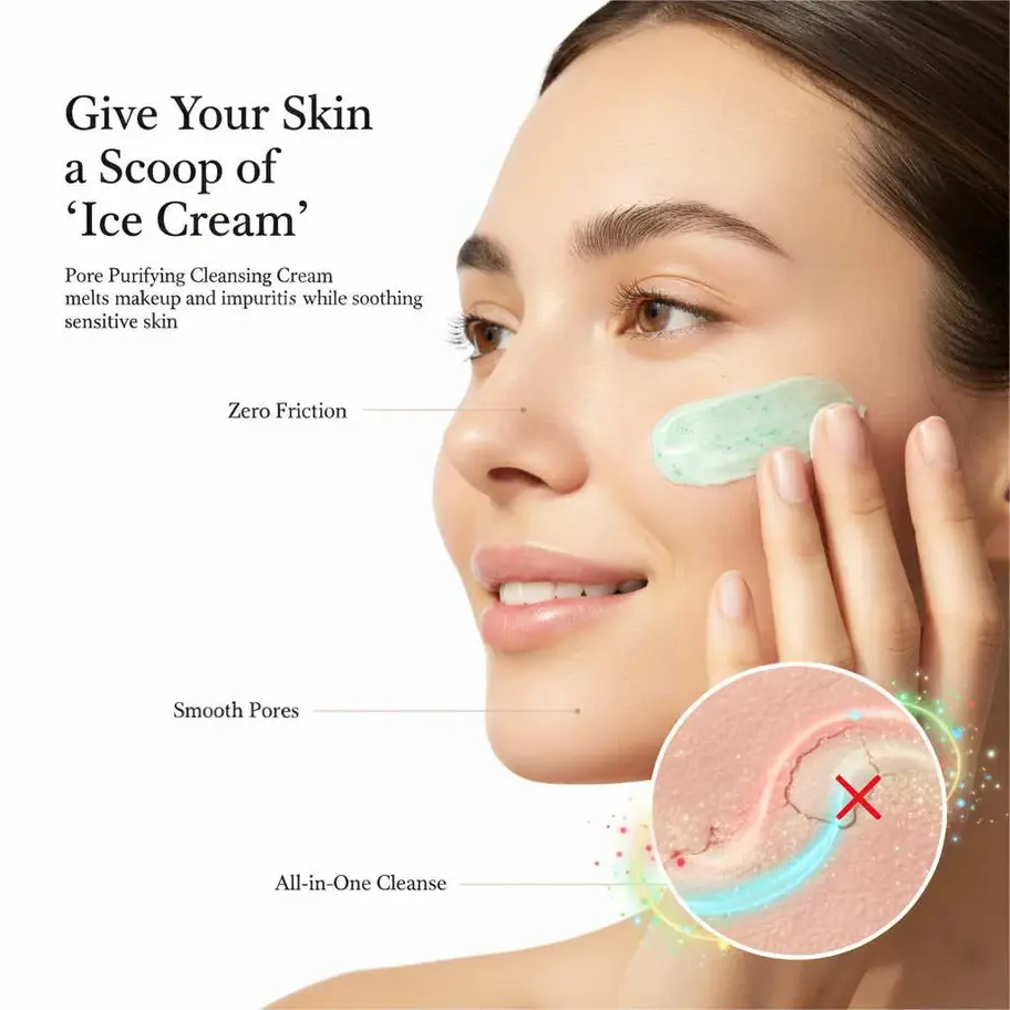 Give your customers the ultimate sensory cleansing experience with our innovative Ice Cream Melting Cleansing Balm. Designed for OEM/ODM brands looking for a viral-worthy product, this balm features a unique texture that transforms from a soft "ice cream" cream to a silky oil, and finally into a purifying milk. It’s the perfect all-in-one solution for deep pore cleansing and stubborn makeup removal.