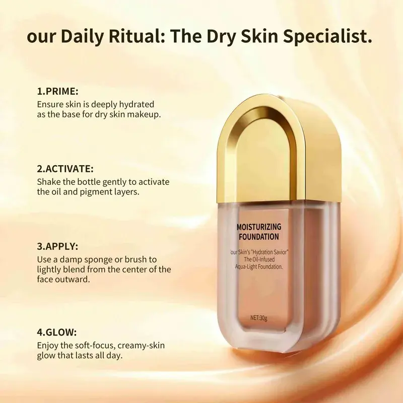 As an expert OEM/ODM makeup manufacturer, we offer this luxury "Aqua-Light" formula for brands seeking to combine the aesthetic of high-coverage makeup with the clinical benefits of premium herbal oils.